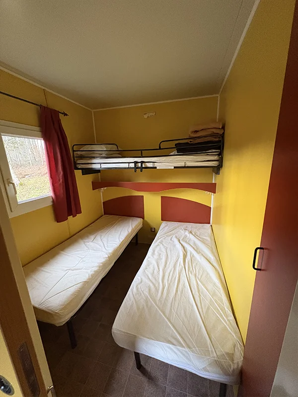 • 1 bedroom with bunk bed with 2 single beds underneath (size 80cm)